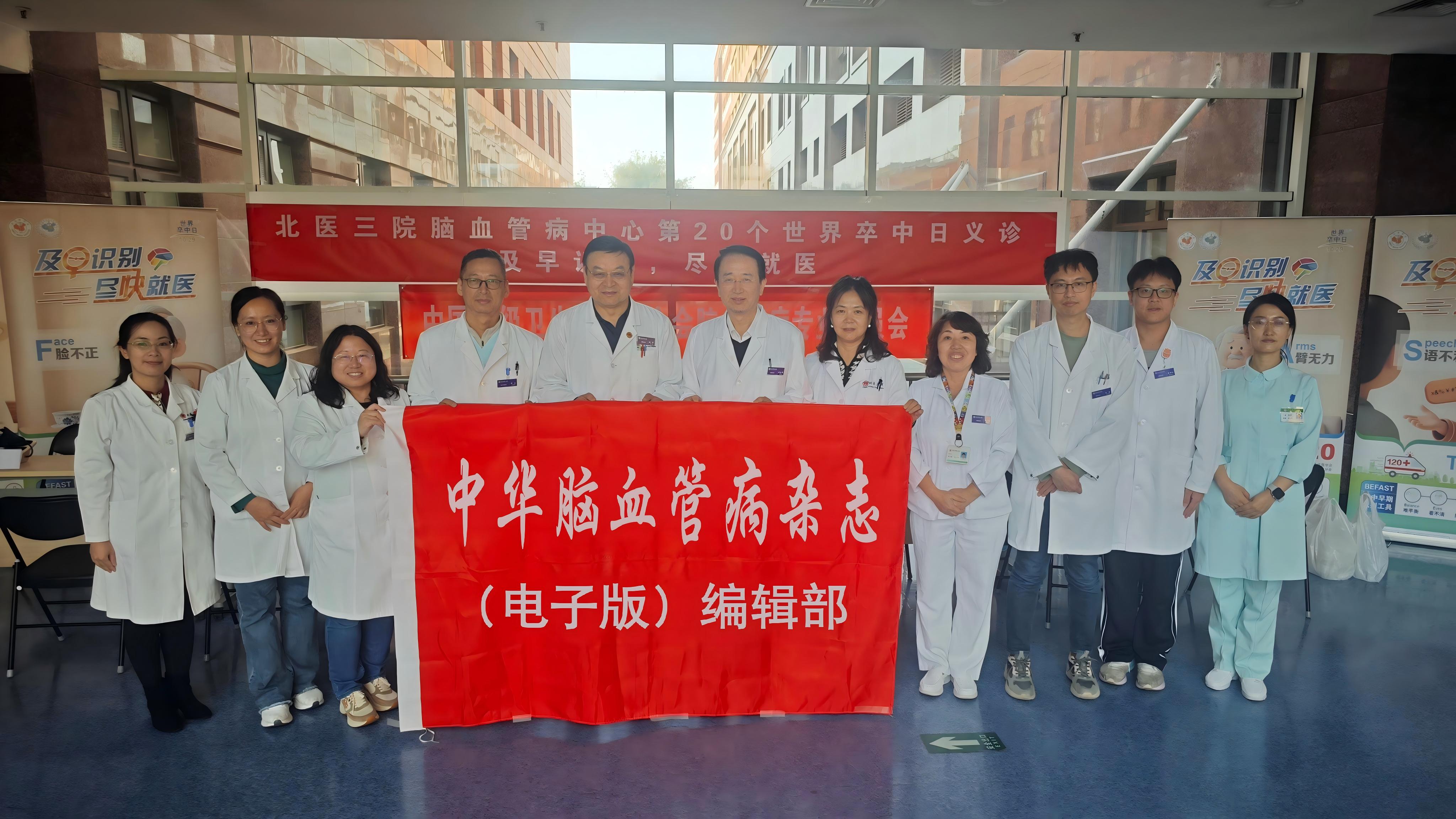 2025年10月29日是第20个“世界卒中日”。在第20个“世界卒中日”来临之际,为响应国家卫生健康委办公厅关于开展“2025年世界卒中日主题宣传活动”,2025年10月28日在中华脑血管病杂志(电子版)樊东升总编辑的带领下,集结了神经内科、神经外科、介入血管外科、超声科、药剂科等学科的多位专家在北京大学第三医院脑血管病中心在花园路院区、机场院区及北部院区开展了以“尽早识别,立刻就医”为主题的大型义诊及健康宣教活动。